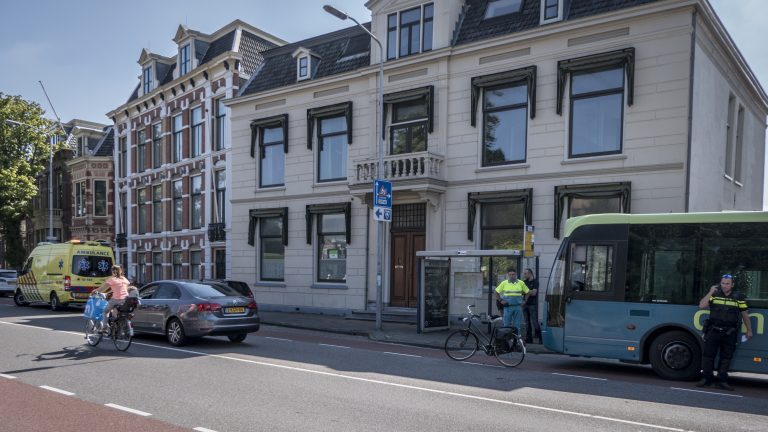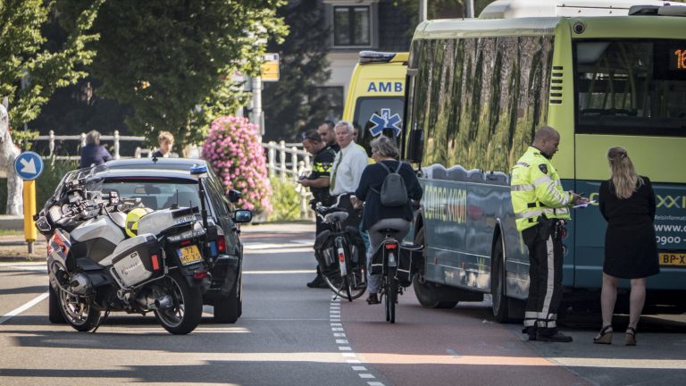De buschauffeur zag tijdig dat er een fietser naast de bus red en stopte, maar de vrouw had al gereageerd en stuurde naar links. Daardoor raakte ze een auto die haar op dat moment weer inhaalde en kwam ze ten val. Ze is met onder andere rugklachten naar het ziekenhuis gebracht.