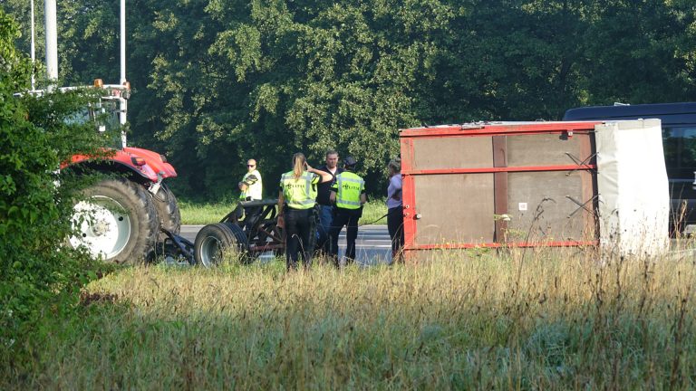 Woensdagochtend is op de Huiswaarderweg in Alkmaar en grote tractor-aanhanger combinatie in de problemen geraakt.