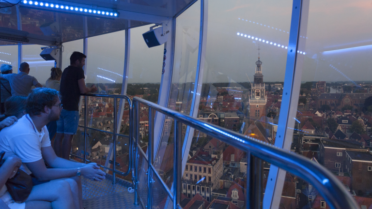 Dat de kermis dit jaar draait op groene stroom is fraai, maar waar natuurlijk extra aandacht naar uit gaat is de attractie met een kaasgeur: de View Tower. Hoog boven de stad is de Alkmaarse attractie al van grote afstand te bewonderen.