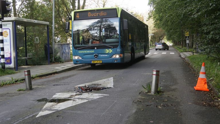 De onfortuinlijke automobiliste reed achter een bus, maar na de bus ging de driehoek zoals gewoonlijk gelijk omhoog. Zij schuurde er met haar voertuig overheen. De vrouw bleef ongedeerd, maar haar auto raakte behoorlijk beschadigd en ook de driehoek ging stuk. Op het wegdek lag een grote plas motorolie.
