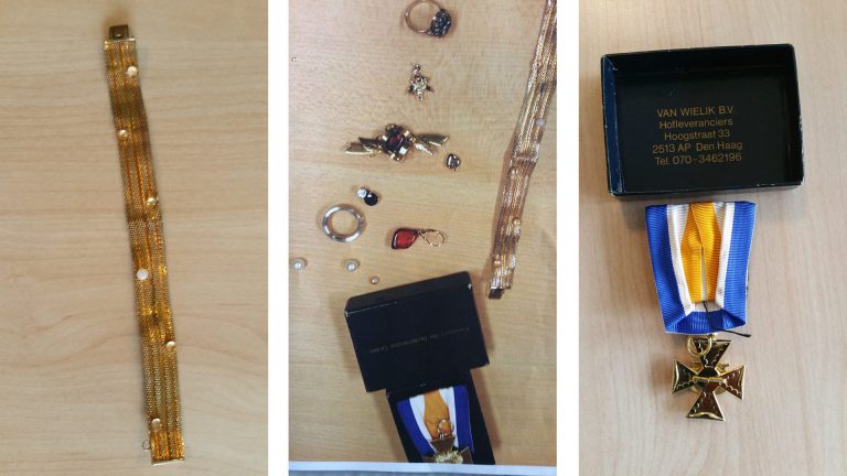 Een diensthond volgde na zijn aanhouding een spoor naar bungalowpark de Schoorlse Duinen, waar bij een speelveld achter een boom een rugzak lag met een aantal sieraden én een koninklijke onderscheiding.