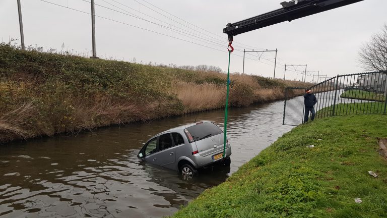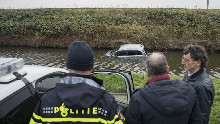 Een vrachtwagenchauffeur die de auto met brandende koplampen in de sloot zag liggen alarmeerde prompt de politie waardoor er een 'auto te water' alarmering uitging. Maar toen de eerste agenten ter plaatse waren, werd die weer ingetrokken.