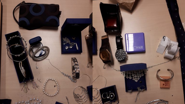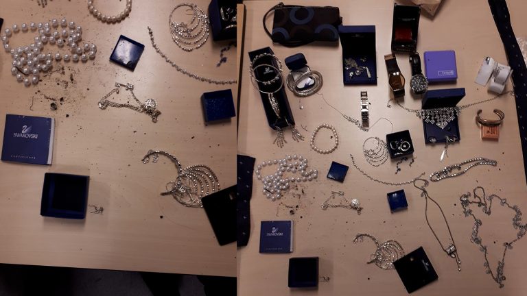 Foto 1 rechts is de hele verzameling, de andere zijn delen ervan. Wie de sieraden herkent, wordt verzocht contact op te nemen met de politie via 0900-8844. Het casusnummer is 2018003345.
