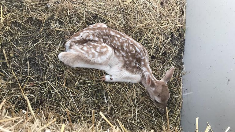 De sterren van het Waardse Hertenkamp zijn overigens nog niet terug verhuisd. De bok en de vier hindes worden overgebracht wanneer het gras daar lang genoeg voor is. En ook de nieuwe aanwinst voor de familie. Vrijdag de 13e is er in het tijdelijke onderkomen een hertenkalfje geboren. (foto: Facebook Kinderboerderij de Bongelaar)