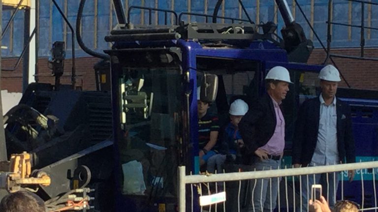 Als een raket is de bouw van start gegaan en de aannemer vierde dat samen alle aanwezigen door ijsjes uit te delen uit de 'raket', die hij meegenomen had.