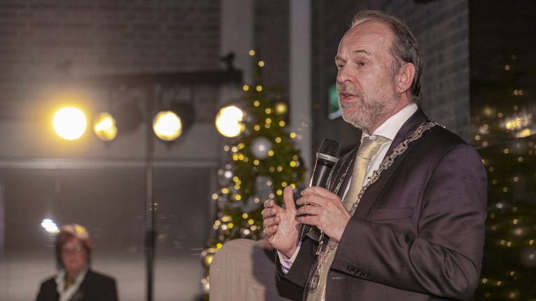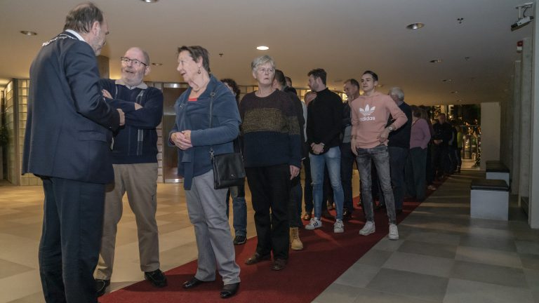 Donderdagavond organiseerde gemeente Heerhugowaard zijn nieuwjaarsreceptie in het gemeentehuis. Vanaf 19:30 uur stond burgemeester Bert Blase gereed om iedereen die langs kwam persoonlijk de hand te schudden en een gelukkig nieuwjaar te wensen. Al snel stond er een hele rij mensen, waaronder een aantal Langedijkers, netjes te wachten tot ze aan de beurt waren.