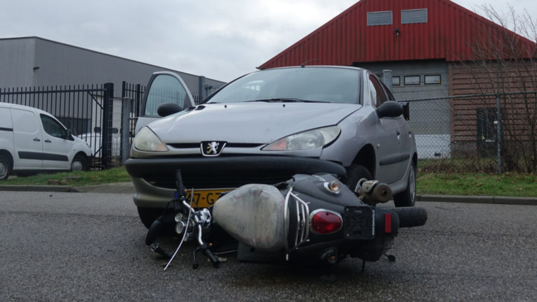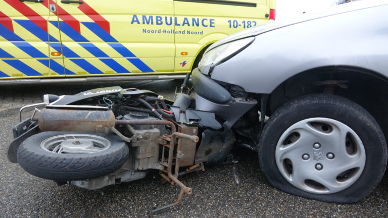 In de Einsteinstraat in Heerhugowaard vond dinsdagochtend een botsing plaats tussen een scooter en een auto. Vermoedelijk wilde de automobilist keren en heeft hij hierbij de naderende scooter over het hoofd gezien. Door de klap raakten beide voertuigen flink beschadigd.