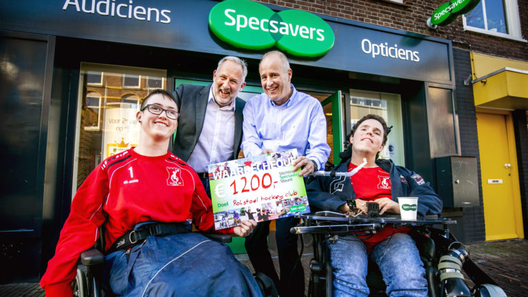 Specsavers Alkmaar Centrum spaarde in 2018 een bedrag van 1.200 euro voor Rolstoelhockeyclub Vios 81 Alkmaar. De vestiging in De Mare deed het nog een tandje beter: Trompetterkorps Alkmaar mocht een bedrag van 1.319,43 in ontvangst nemen voor het gratis lesprogramma Music-4U. Deze week overhandigden beide winkelteams een symbolische cheque aan hun lokale goede doel.