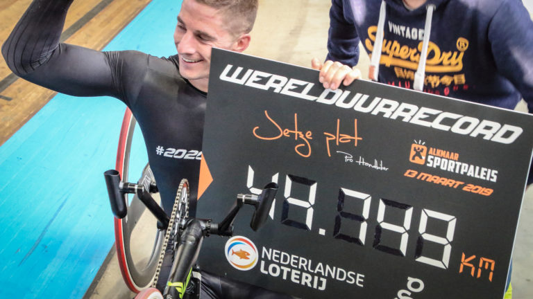 Wereldkampioen handbiken Jetze Plat heeft woensdagmiddag in Sportpaleis Alkmaar het werelduurrecord van landgenoot Geert Schipper verbeterd. Binnen het daarvoor gestelde uur wist hij 44 kilometer en 749 meter af te leggen. Omdat hij ronde na ronde onder het schema reed werd het oude record al na 57 minuten geëvenaard waarop het aanwezige publiek in een luid gejuich uitbarstte.