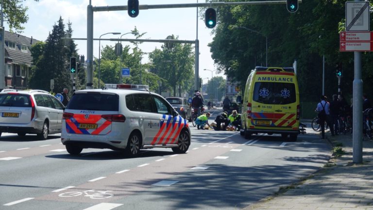 Een oudere vrouw is woensdagmiddag gewond geraakt nadat zij hard ten val is gekomen. De vrouw reed op haar scootmobiel op de Kennemerstraatweg, waar zij moest stoppen voor het rode licht op de kruising met de Juliana van Stolberglaan. Mogelijk heeft zij gas gegeven in plaats van de remmen ingedrukt. Hierdoor raakte ze de fietsster voor haar, waarna ze zelf hard ten val kwam.