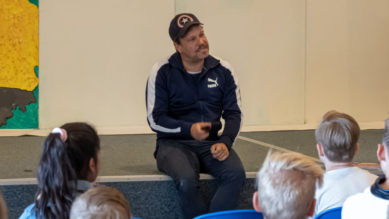 De spanning was af te lezen van de gezichten van de leerlingen van groep 8. Niemand minder dan Carlo Boszhard kwam dinsdag naar Broek op Langedijk om een musical-workshop te geven op de J.D. van Arkelschool. Om 10:00 uur was het eindelijk zover.