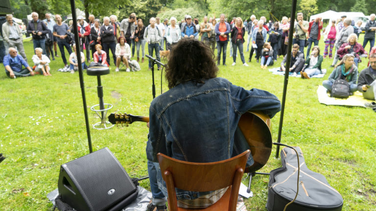 Het was zondagmiddag goed toeven in De Hout. Met de (semi-)akoestische optredens op het programma onder de grote eiken en iepen liep het festivalterrein van Podium onder de Boom langzaam vol.
