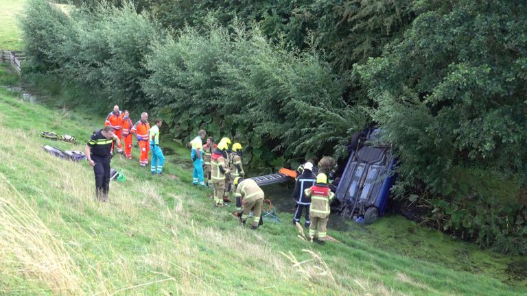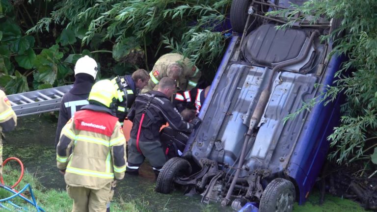 Zaterdagmiddag is automobilist gewond geraakt bij een eenzijdig ongeval op de kruising van de Rustenburgerweg en de Noordschermerdijk in Rustenburg. Door nog onbekende oorzaak schoot de auto door een hek en kwam onderaan de dijk op de kop en in het water tot stilstand.