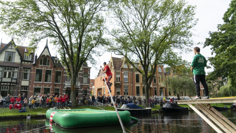Zaterdagmiddag werd voor het eerst een polsstokverspring wedstrijd gehouden als onderdeel van de 8 october feesten. Niet heel raar want het was de Alkmaarse timmerman Maarten van der Meij die in 1573 met een geheime boodschap door de Spaanse linies 'sloop'. De boodschap aan gouverneur Diederik Sonoy zat verstopt in zijn polsstok.