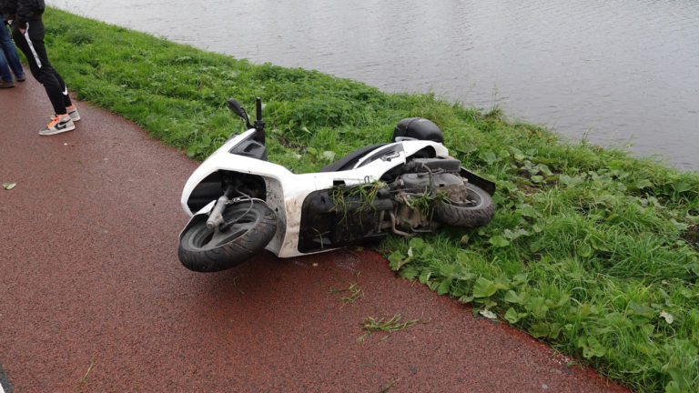 Een scooterrijder is dinsdagochtend bij een wegversmalling op de Kanaaldijk in Koedijk door een tegenligger de berm in gedrukt en net naast het water onderuit gegaan. De jongen liep een wond op aan zijn been, maar hoefde niet met de ambulance mee naar het ziekenhuis. De tegenligger is doorgereden.