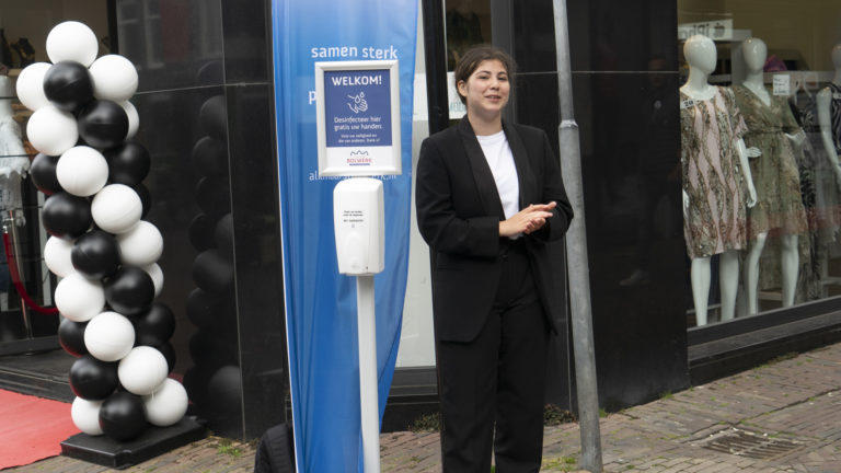 De mensen die wèl naar binnenstad zijn gekomen lijken zich aan de nieuwe regels te houden. Er wordt keurig rechts gehouden, niet heel verwonderlijk gezien het aantal aanwijzingen dat aanwezig is. Daar bovenop is er nu ook de mogelijkheid gebruik te maken van een automatische zeep dispenser om, voor mensen de Langestraat inlopen, de handen te reinigen. De gastvrouw die er bij staat benadrukt nog maar even dat het gebruik ervan strikt vrijwillig is.