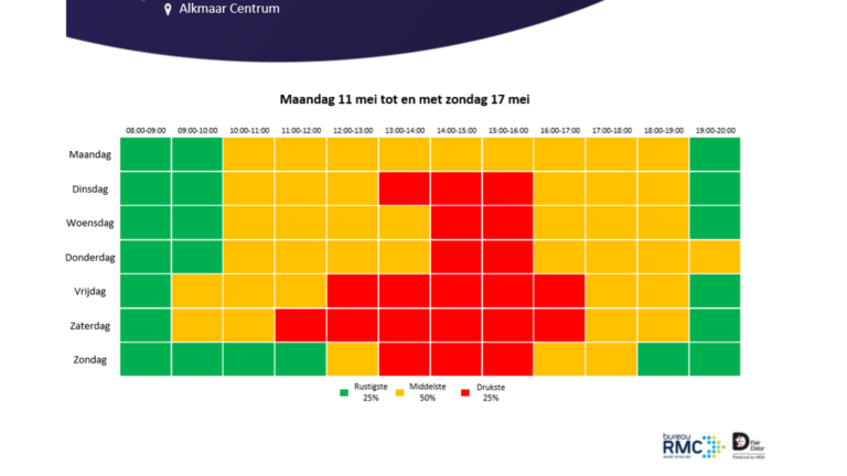 Gemeente Alkmaar heeft een overzicht gepubliceerd over de drukte in het centrum van Alkmaar en in winkelcentrum De Mare, in de week van maandag 11 mei tot en met zondag 17 mei. Hiermee wil de gemeente laten zien op welke dagen en tijdstippen het beter is om niet te gaan shoppen. "Vermijd deze drukke plekken en momenten! Zo kan iedereen veilig en prettig winkelen".