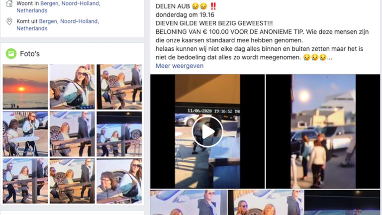 Foto's en videobeelden van de diefstal van een kaarsenstandaard in Bergen aan Zee gingen vrijdag viraal. Op Facebook werd het bericht al meer dan 700 keer gedeeld. Camerabeelden werden bijna 28.000 keer bekeken.