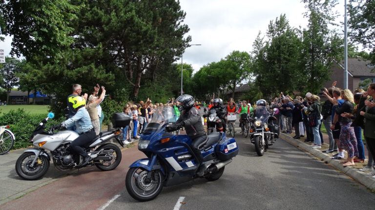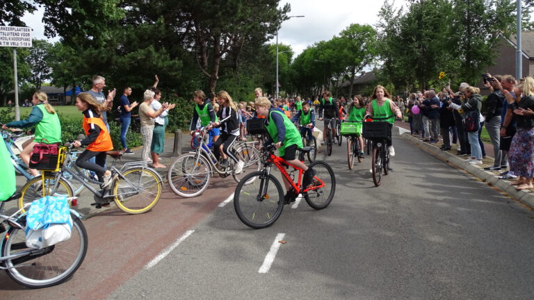 De Beethovensingel in de wijk Bergermeer was vrijdagochtend afgezet wegens de terugkeer van de 53 kinderen van groep 8 van de Nicolaas Beetsschool. De leerlingen keerden per fiets terug van een alternatief kamp, dat de afgelopen drie dagen werd gehouden in Egmond aan Zee.