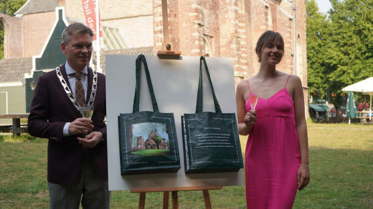 Dinsdagmiddag werd op het gras bij de Ruïnekerk in Bergen de 2020-editie van de Bergense kunsttas onthuld. Burgemeester Rehwinkel kreeg de tas overhandigd in aanwezigheid van de Bergense zangeres Maan Steenwinkel, die de tekst op de tas dichtte, en Mascha Dik die de afbeelding op de tas heeft verzorgd.