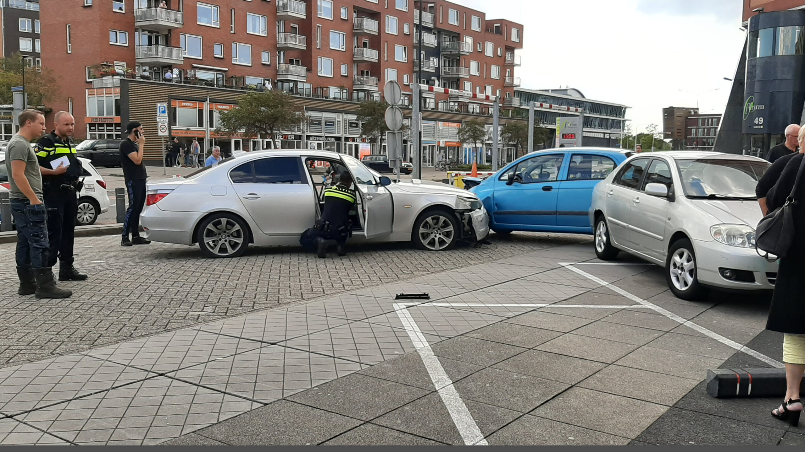 Woensdagmiddag raakte de bestuurder van een zilvergrijze BMW de macht over het stuur kwijt toen hij in Heerhugowaard op het Stationsplein de 'slinger' ter hoogte van het station wilde nemen. De auto vloog met flinke vaart de het parkeerterrein bij het Forum op. Maar liefst zes van de daar staande paaltjes werden geramd voordat de BMW na het raken van een geparkeerde auto, die op zijn beurt weer een andere auto raakte, tot stilstand kwam.