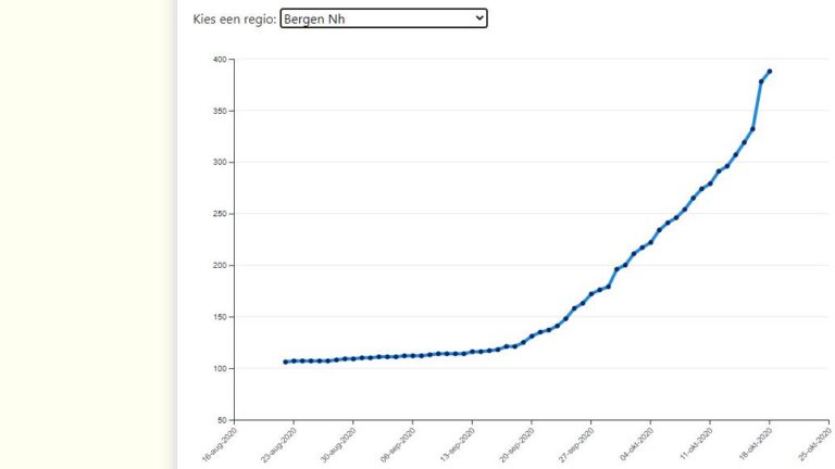 De kans is groot dat de Veiligheidsregio Noord-Holland Noord einde deze week op het coronadashboard een niveau wordt opgeschaald, van 'zorgelijk' naar 'ernstig'. Dat komt door het snel toenemende aantal positief getesten in de regio. De gemeente Bergen laat de meeste positief getesten zien van de regio per 100.000 inwoners. Dat meldt woordvoerder Harry Katstra van de Veiligheidsregio Noord-Holland Noord tegen mediapartner NH Nieuws.