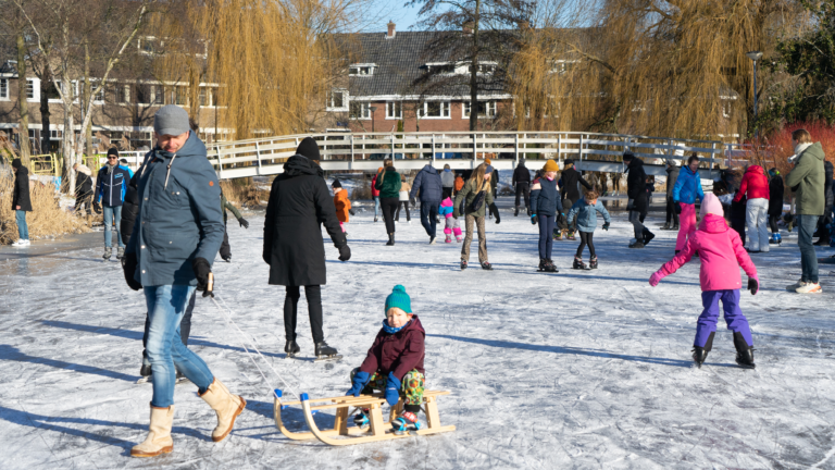 Er werd eigenlijk al dagen naar uitgekeken en eindelijk was het dan zo ver; mooi weer, vrij van het werk en een mooie ijslaag op het water. Op heel veel plaatsen in Alkmaar werden dan ook de ijzers ondergebonden om te genieten van de geboden mogelijkheid.