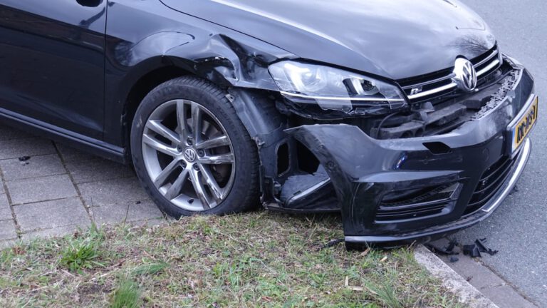 Een bergingsbedrijf haalt beide voertuigen op. De gemeente zal een lantaarnpaal moeten vervangen. (foto's: Inter Visual Studio)