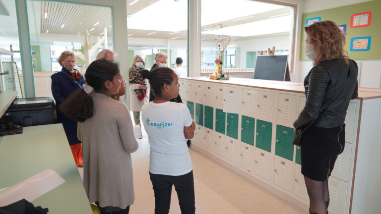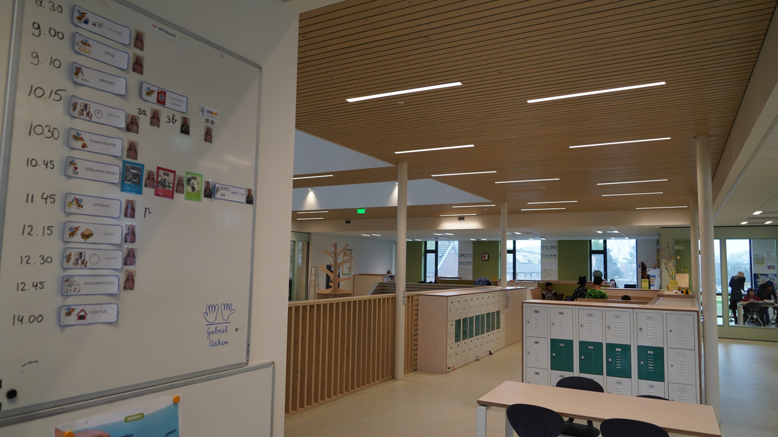 Zichtbaar trots leiden leerlingen de belangrijke gasten voor de officiële opening rond over de twee verdiepingen van het nieuwe schoolgebouw. Het is vergeefs zoeken naar het klaslokaal waar elke groep een vast honk heeft, want de hele benedenverdieping is voor de jongste kinderen, en de hele bovenverdieping is voor de midden- en bovenbouw. Leerlingen die wat meer aandacht nodig hebben, krijgen die van de leerkrachten terwijl andere leerlingen die al wat verder zijn zelfstandig aan de weekopdrachten kunnen werken op een plek waar dat voor hem of haar het beste lukt. Leerlingen krijgen te maken met meer dan één juf of meester. Veelal hebben de leerkrachten een eigen specialisme ontwikkeld waar elk kind van kan profiteren dat daar baat bij kan hebben.