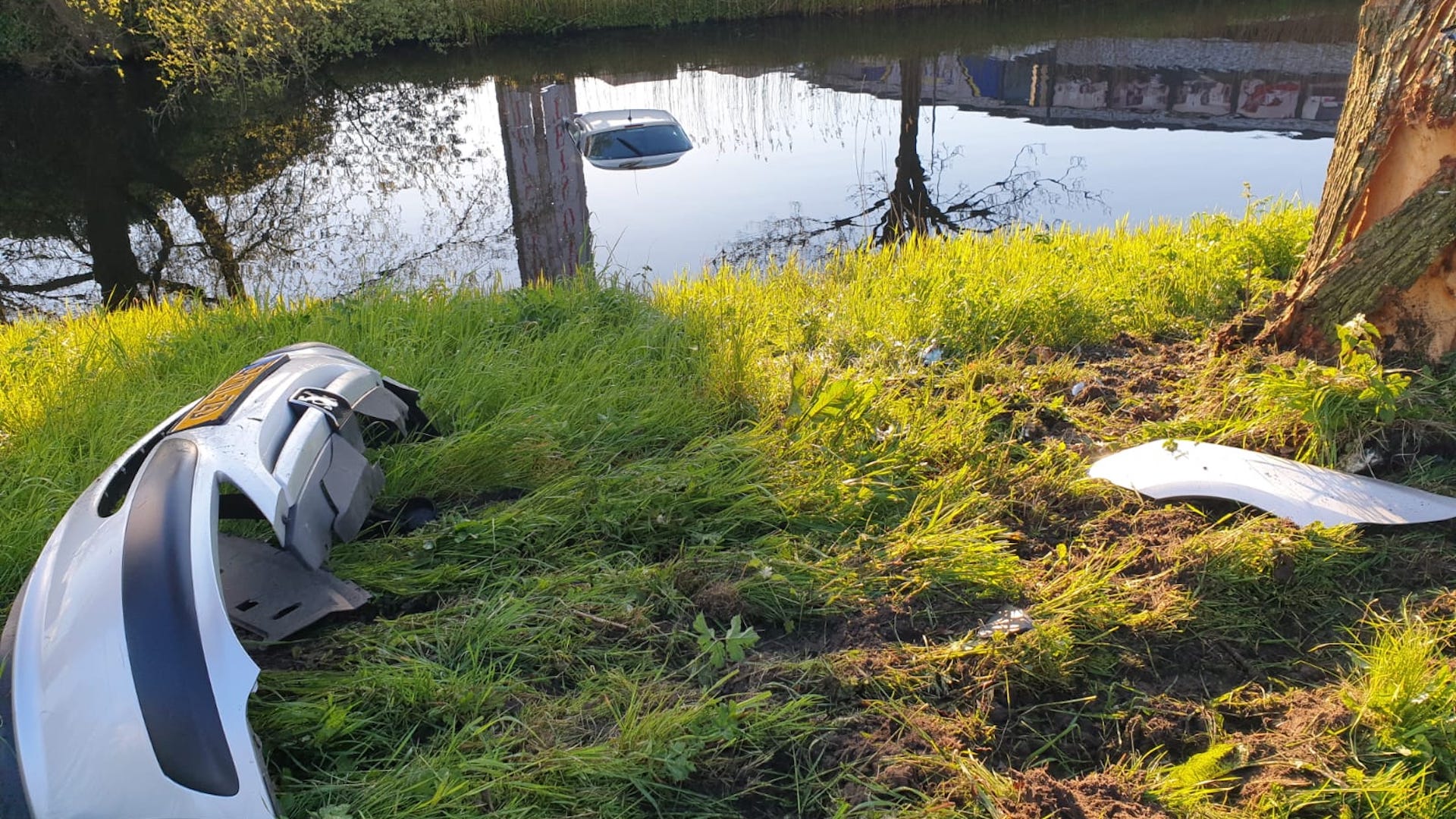 Zondagmorgen rond 7:00 raakte langs de Westerweg (N242) in Heerhugowaard een auto te water ter hoogte van bedrijventerrein Zandhorst. Voordat de personenauto in het water belandde, raakte deze een lichtmast en een boom.