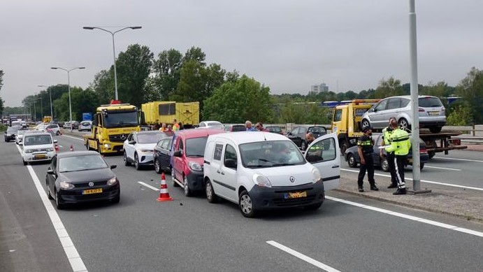Enkele mensen werden door het ambulancepersoneel nagekeken, maar hoefden niet mee naar het ziekenhuis. Drie auto’s gingen mee met de berger. Hiervoor werd één rijstrook afgesloten.