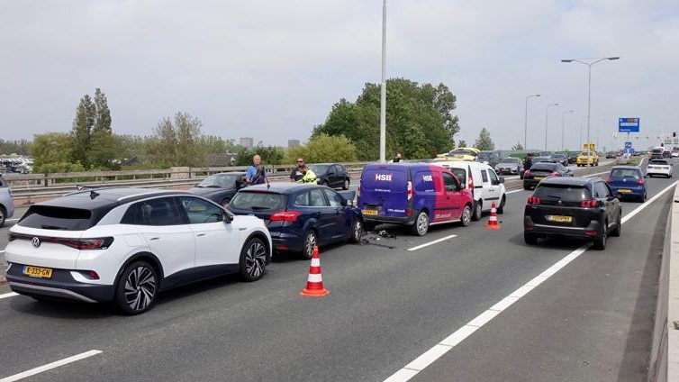 Vrijdagmiddag raakten vijf auto's betrokken bij een kop-staartbotsing op het viaduct op de Nollenweg (N508) in Alkmaar. Een auto stopte plotseling om onbekende reden, waardoor vier auto's die erachter reden moesten remmen en op elkaar botsten.