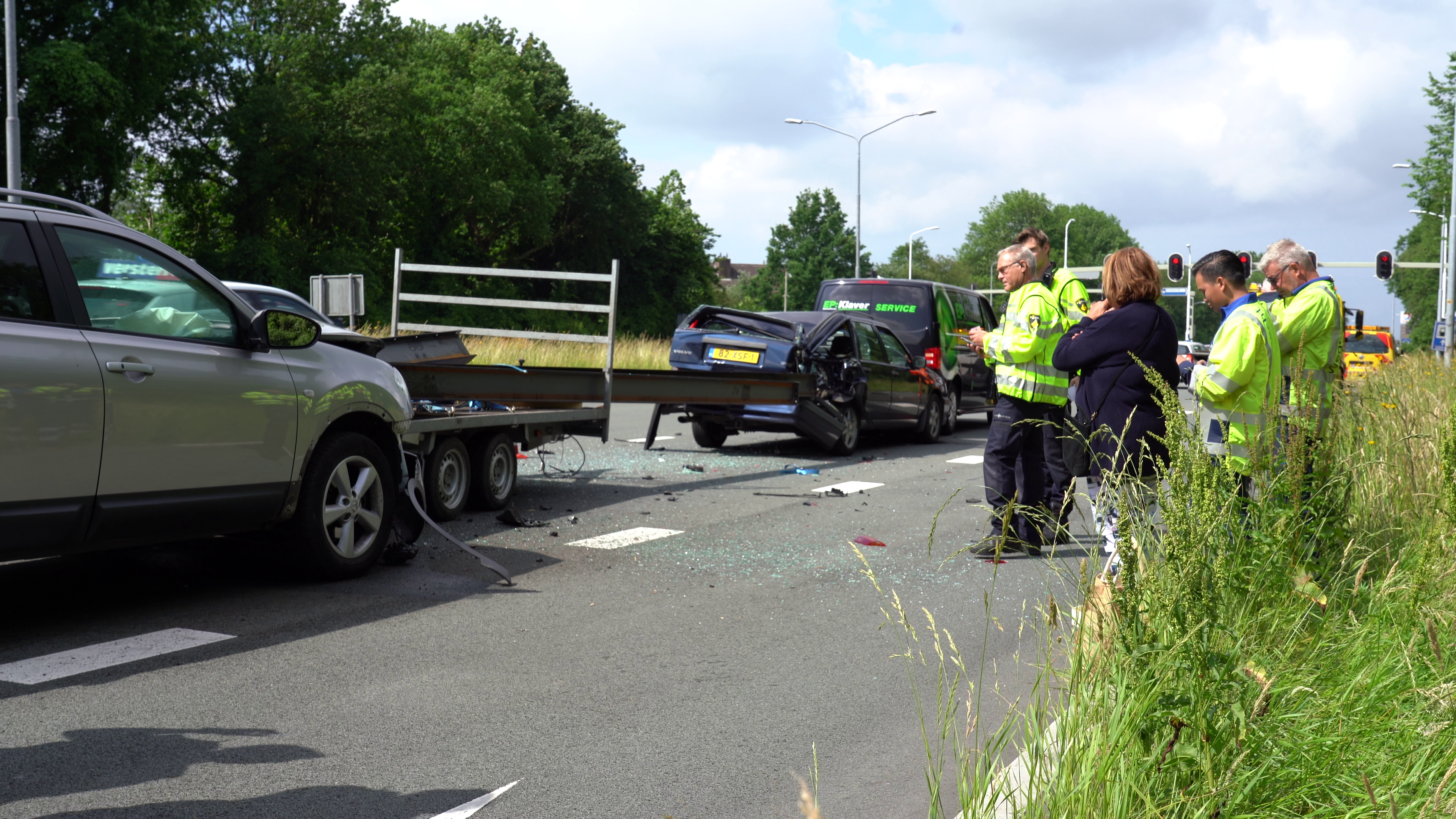 Een spinnetje heeft er dinsdagochtend voor gezorgd dat een automobiliste vol op een aanhanger reed op de Huiswaarderweg in Alkmaar. Op de aanhanger lagen stalen balken en platen, die diep de voorkant van haar auto binnendrongen. Ook de trekkende auto liep veel schade op. Een aantal betrokkenen zijn nagekeken, maar niemand hoefde mee naar het ziekenhuis.