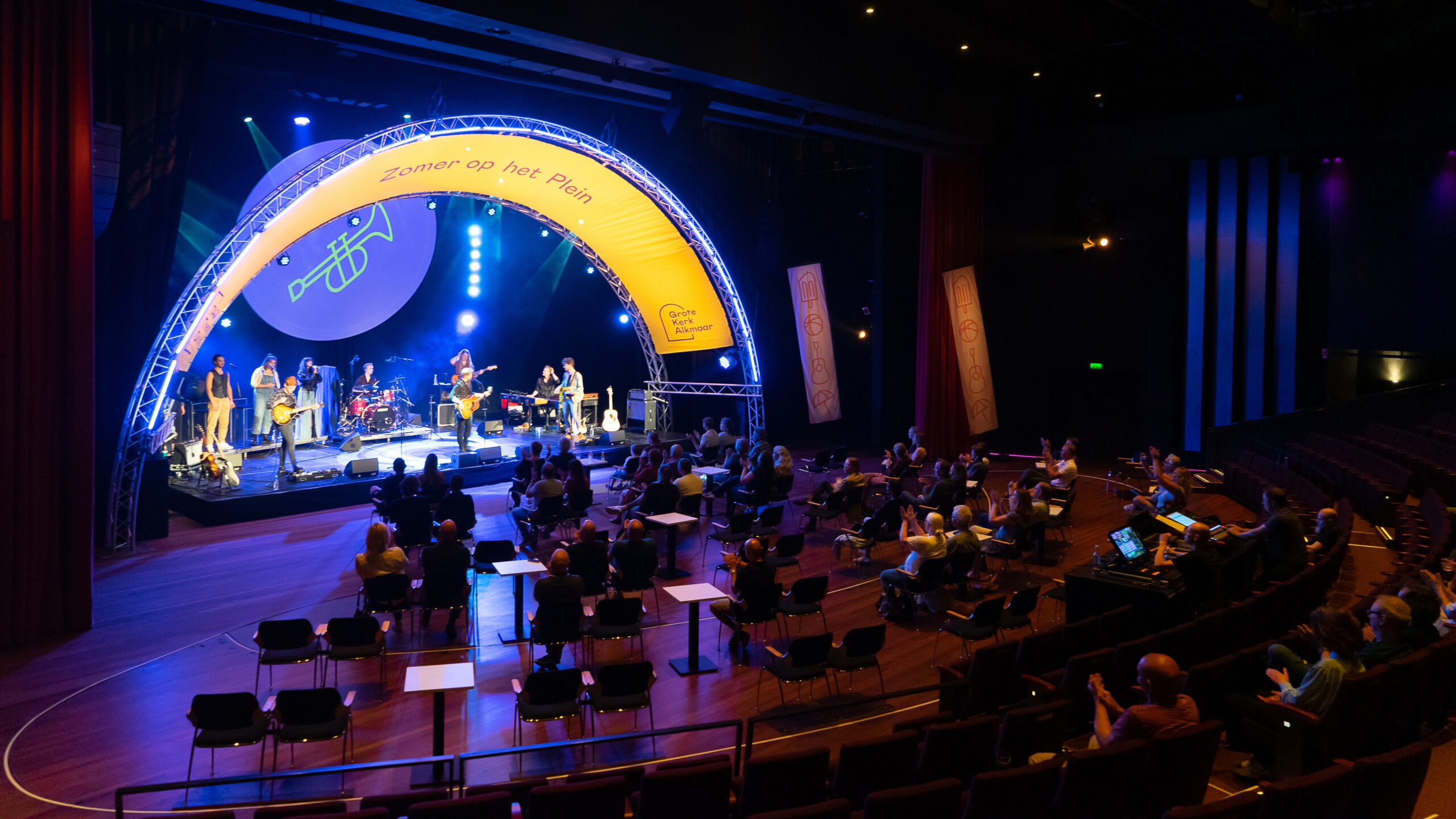 Talentstage zorgt altijd voor een goed gevuld plein, maar de grote theaterzaal was allesbehalve uitverkocht. Mogelijk komt het doordat De Vest pas laat extra kaarten mocht verkopen vanwege de versoepelingen. Maar het kan ook dat liefhebbers het weer te mooi vonden om voor 5 euro binnen te kijken naar optredens die altijd gratis waren. En het is toch niet hetzelfde, als je zitplaatsen krijgt toegewezen.