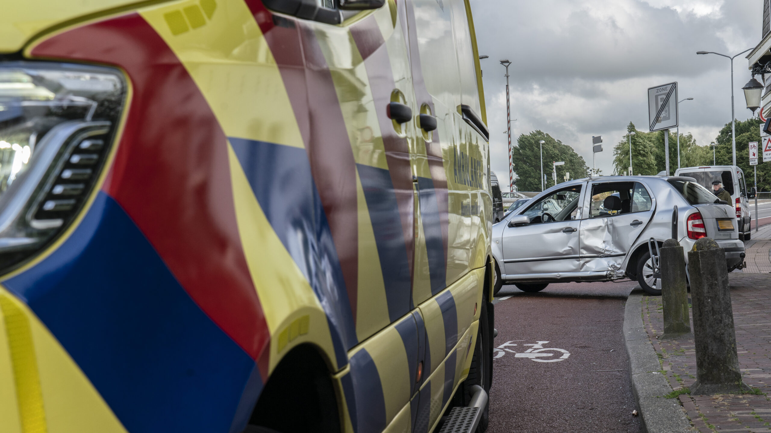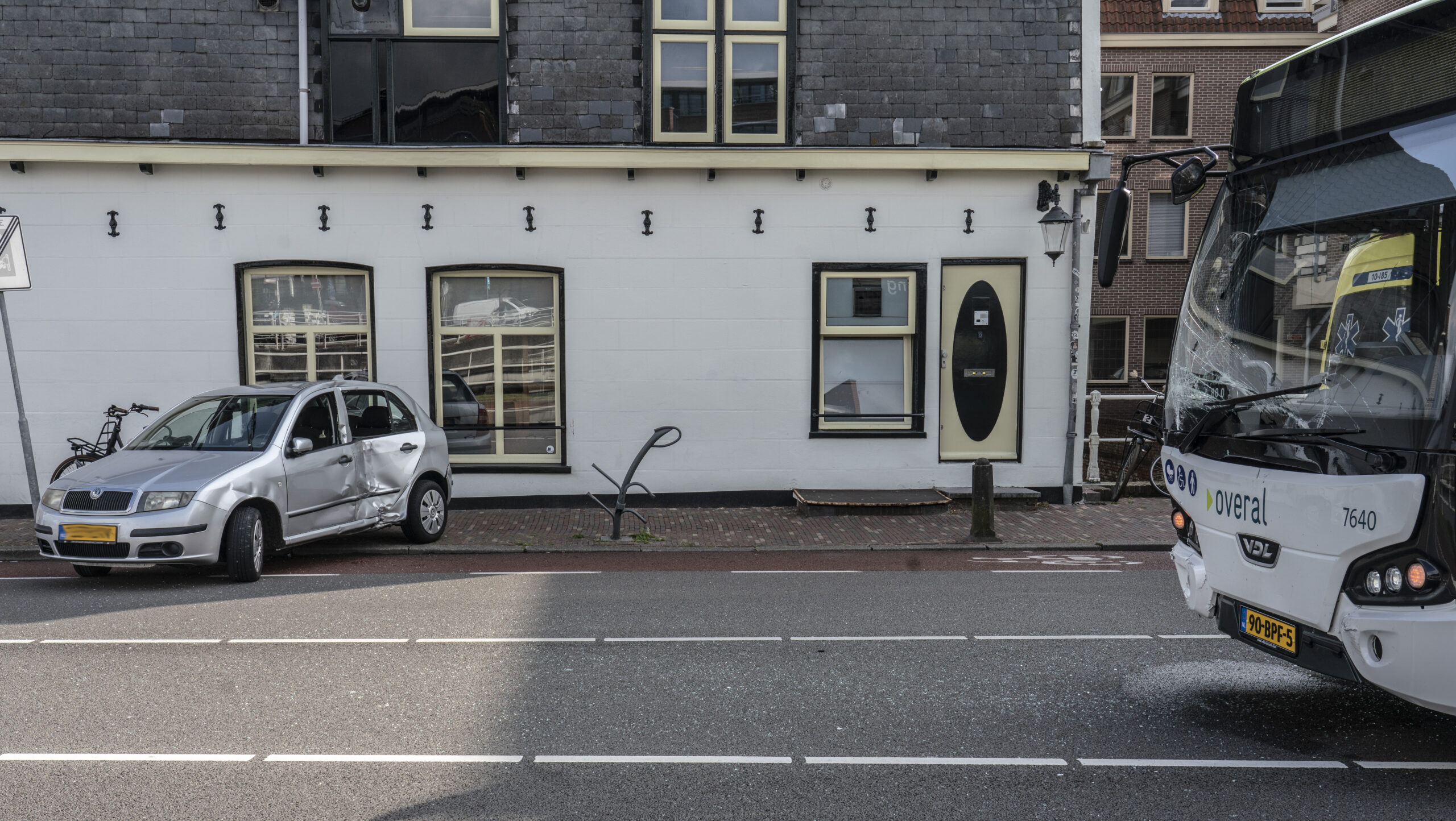 De buschauffeur kon niet meer remmen of uitwijken waardoor de bus de Skoda vol in de flank raakte. Die kwam door de klap half op de stoep terecht, waar op dat moment gelukkig niemand liep.