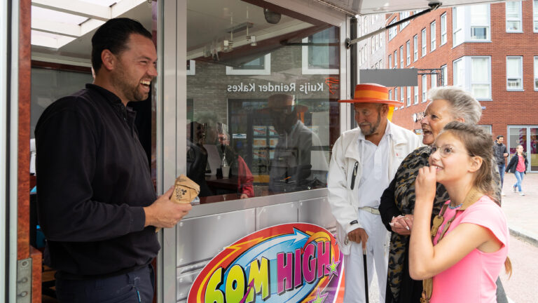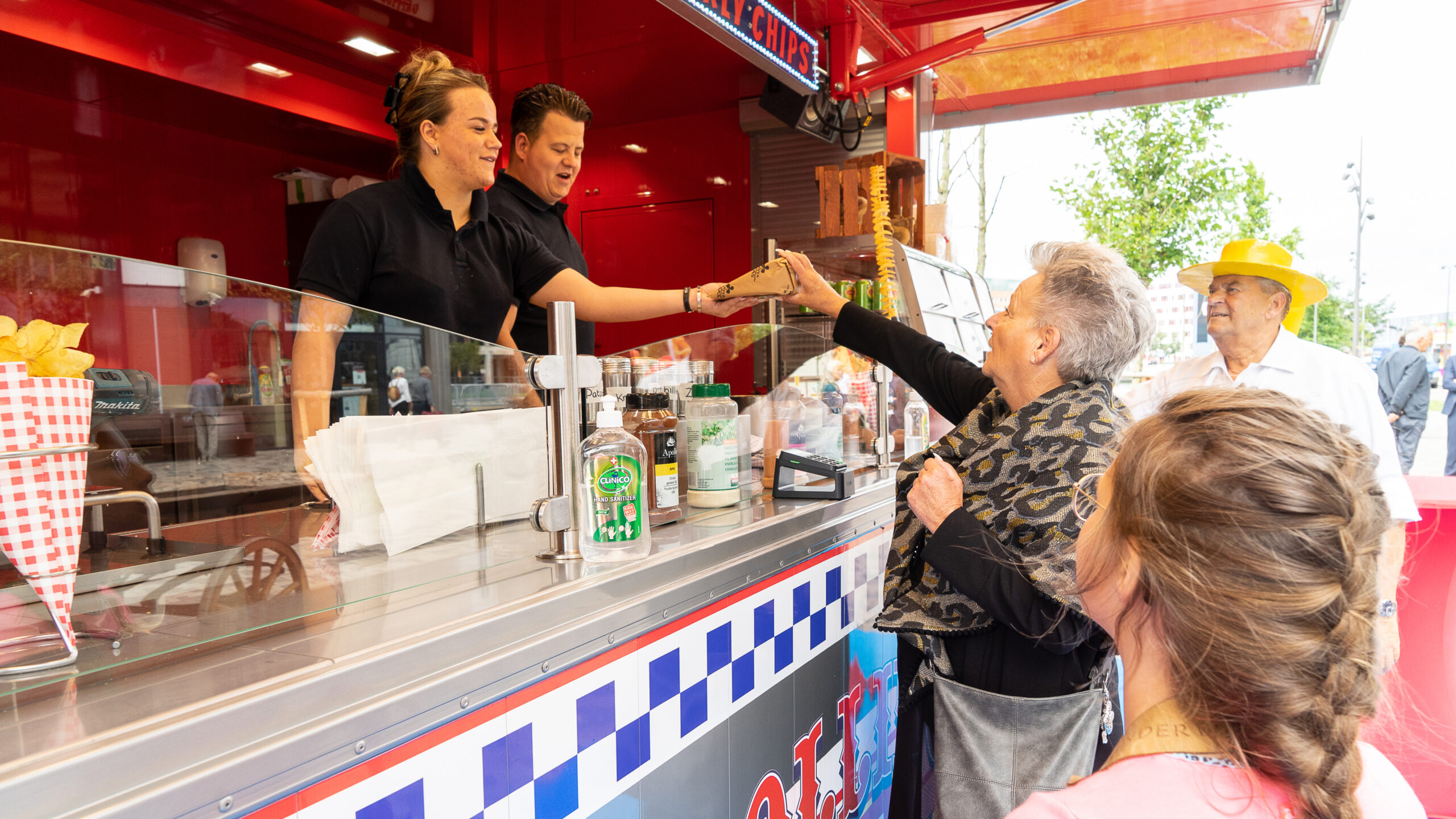 Vrijdagochtend vanaf een uur of tien openden de Kaasvader en een aantal kaasdragers de Alkmaarse kermis door een ronde te maken langs de kermisexploitanten met een handkar vol met kaas. Ook wethouder Elly Konijn was er weer bij om kazen uit te delen en een praatje te maken.