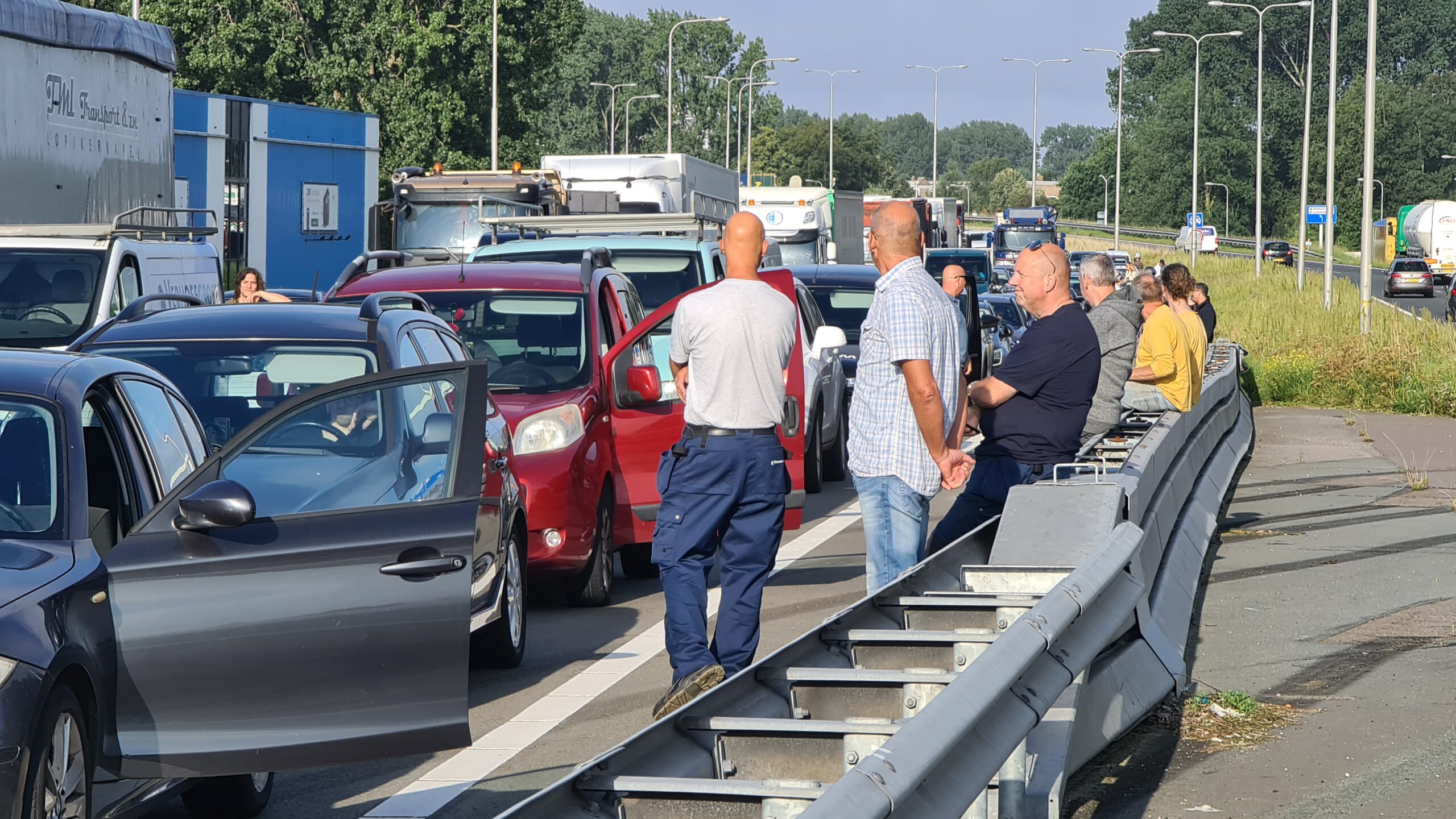 Verkeer staat inmiddels al ruim een half uur vast. Vanaf de A9 vormt zich inmiddels een lange file, waardoor het verkeer ook op alle alternatieve wegen vanuit zuidelijke richting vast komt te staan.