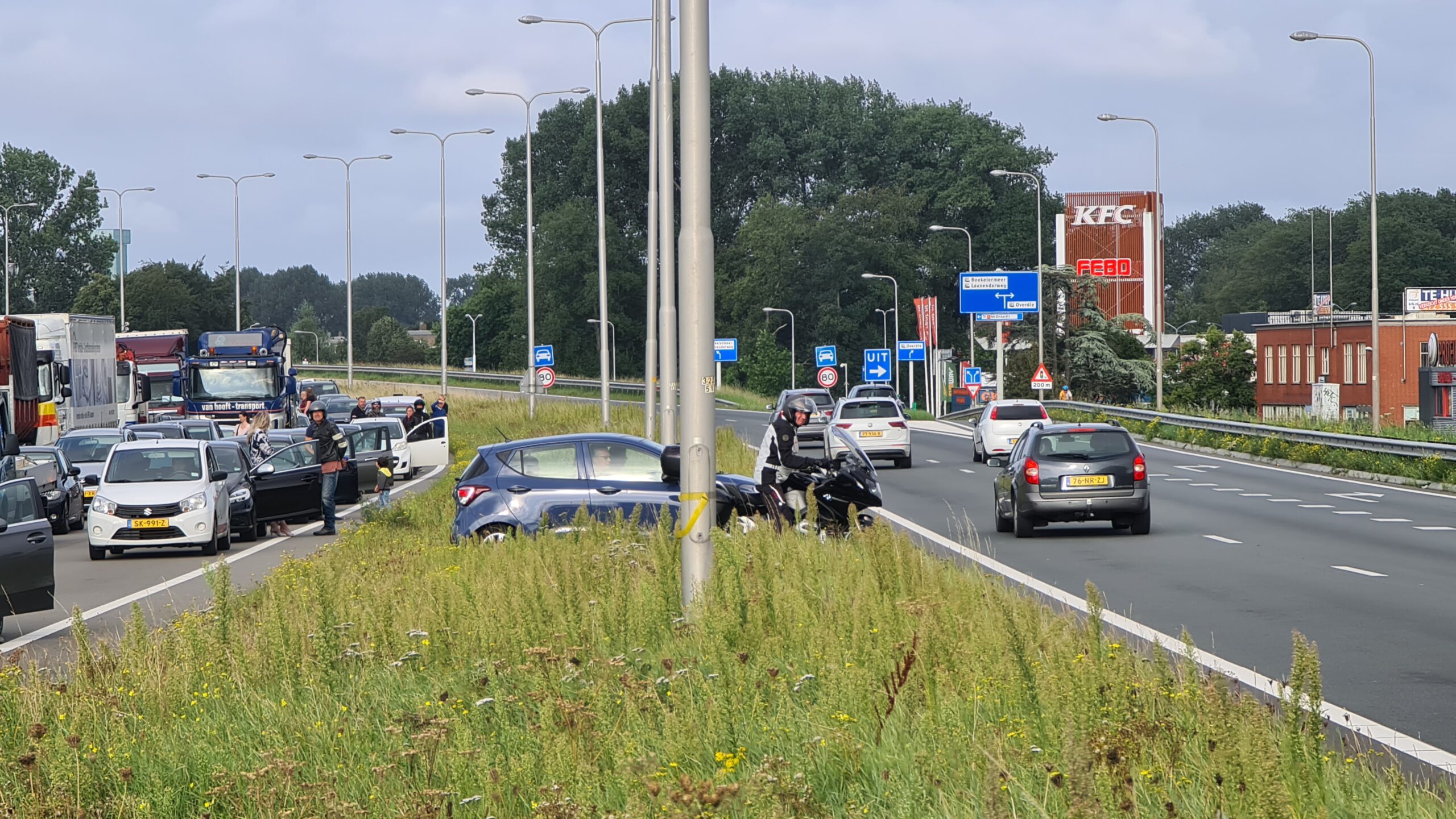 Sommige automobilisten proberen uit de file te ontsnappen door via de middenberm op de andere rijbaan richting Amsterdam te komen. Hier ontstaan levensgevaarlijke siuaties, omdat het verkeer uit de richting Heerhugowaard met minstens 80 kilometer per uur langsraast. De politie is inmiddels onderweg om het gevaarlijke capriolen te ontmoedigen.