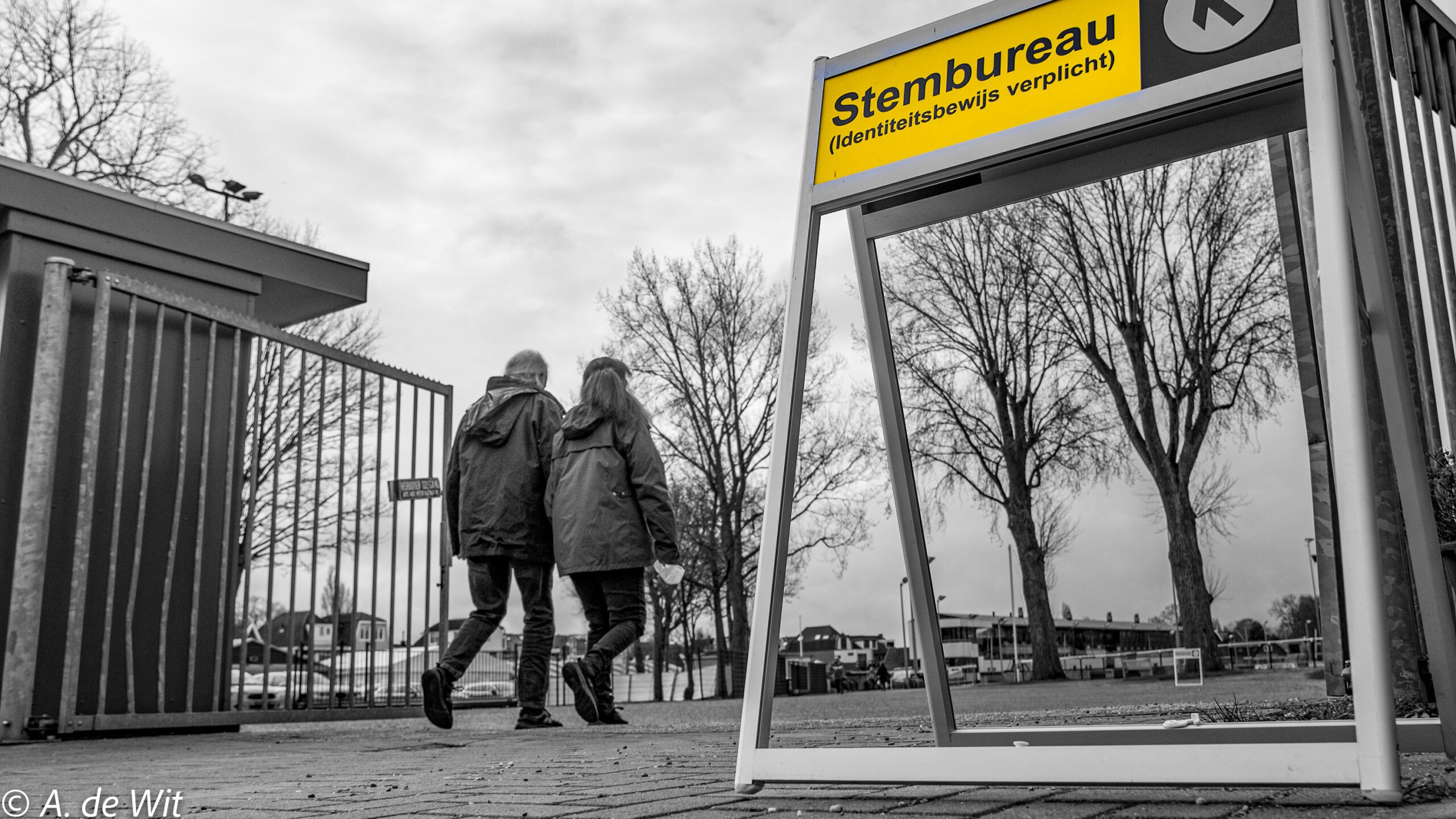 De hoogste eer ging naar de heer A. de Wit. Hij maakte de foto 'Recht om te kiezen'. Te zien is een toegang naar een stembureau, met op de voorgrond een richtingaanwijzer. De foto is geheel zwart-wit, behalve het gele bord met daarop 'Stembureau'.