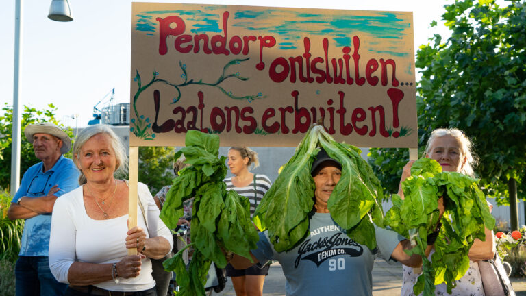 Dinsdagavond hebben Alkmaarse volkstuinders geprotesteerd tegen het verkeersplan rond het PEN-dorp. Voor de nieuwbouwplannen wil de gemeente de Helderseweg omleggen en de ontsluiting van de buurt dwars door Tuincomplex De Rekere leggen. Het ludieke protest werd gehouden bij gebouw De Letterbak aan de Edisonweg, waar de gemeente nu tijdens coronatijd vergadert.