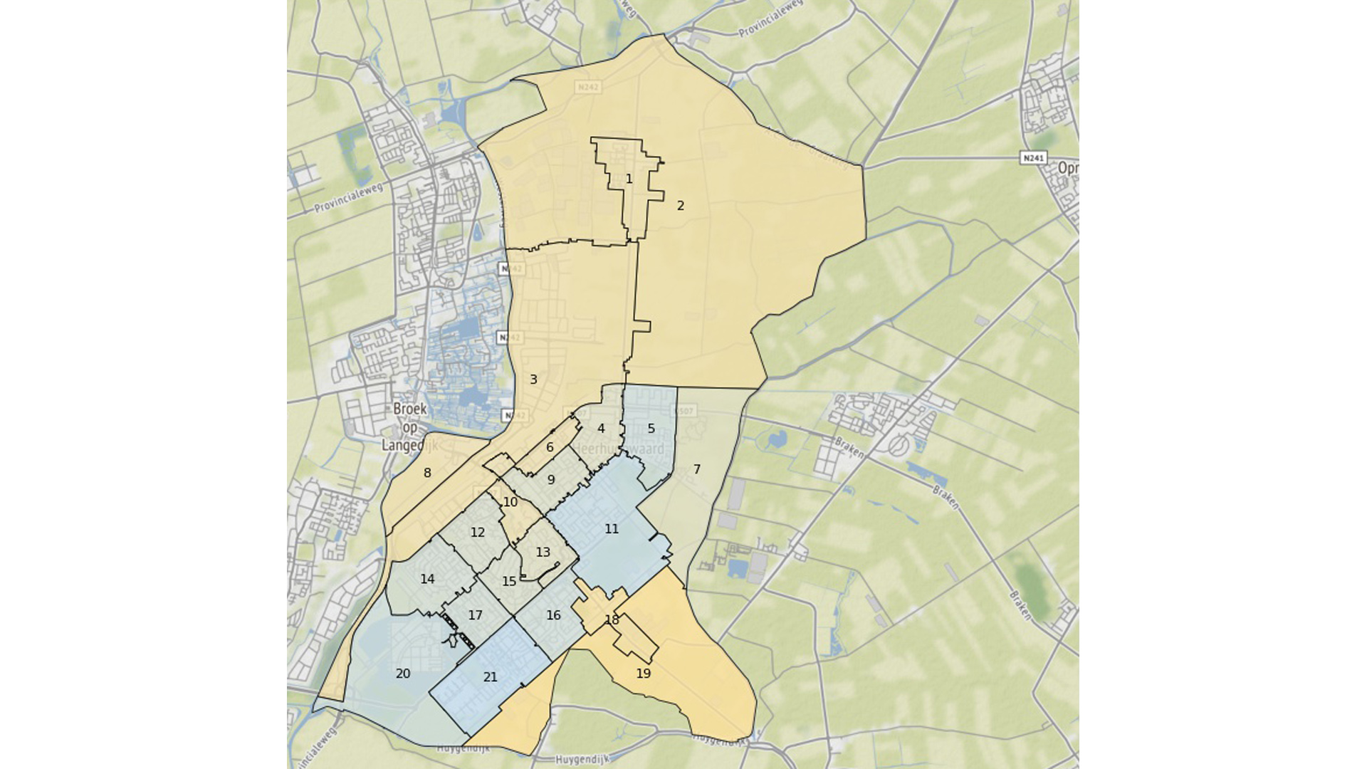 Het college van B&W heeft de aangepaste wijk- en buurtindeling van Dijk en Waard vastgesteld. De gemeentefusie gaf aanleiding om nog eens kritisch naar de indelingen te kijken en om enkele wijzigingen door te voeren. Naast aanzienlijke aanpassingen bij het Geestmerambacht, 't Kruis en De Noord, valt op dat de wijkgrenzen van Heerhugowaard grotendeels recht zijn getrokken.