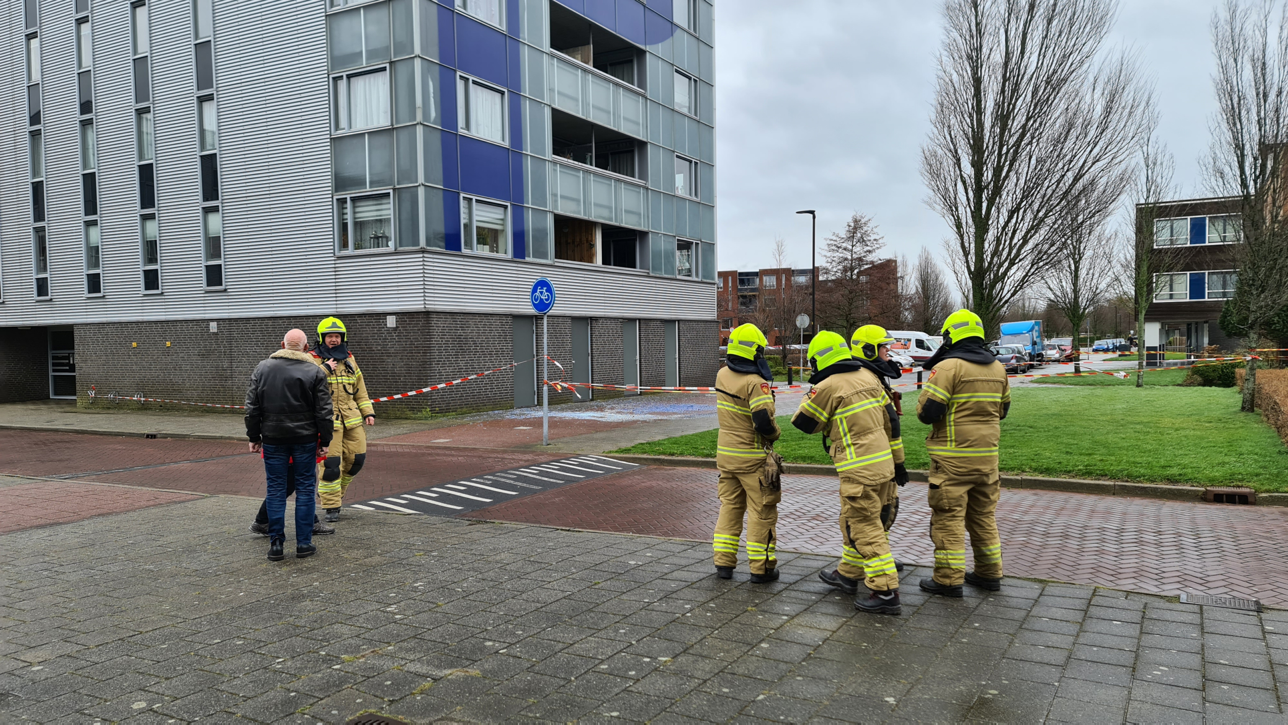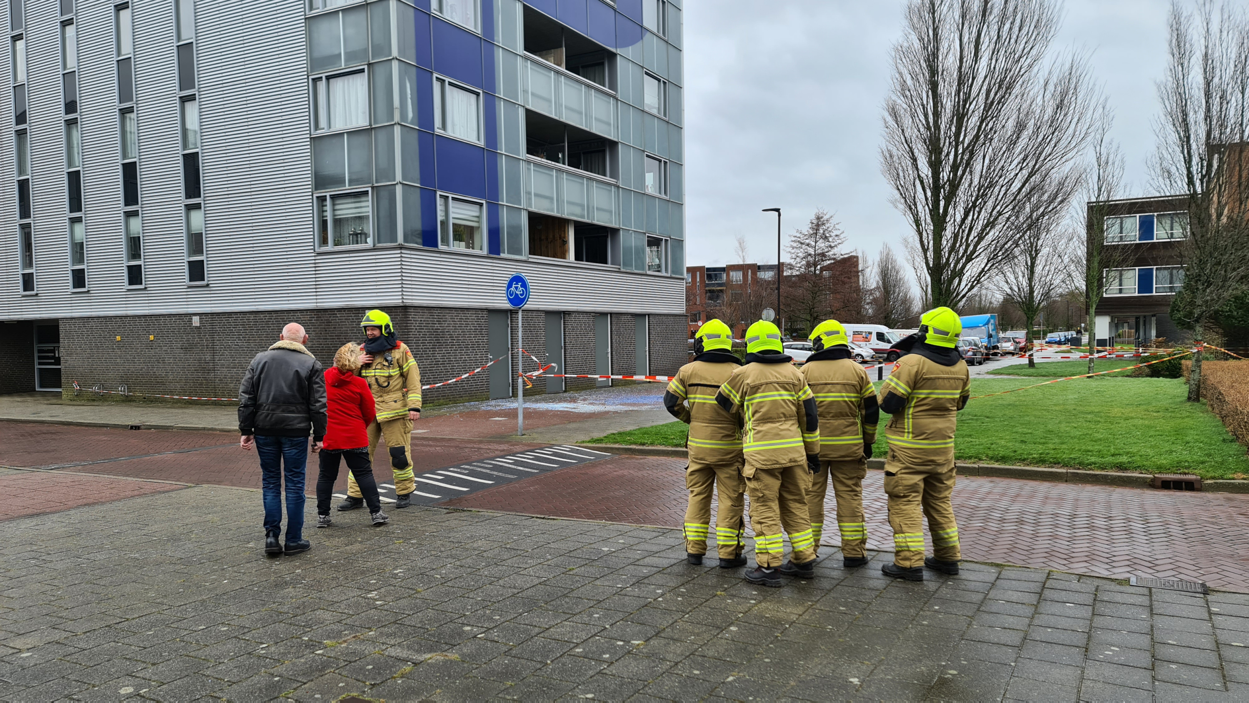 De brandweer is ingeschakeld maar kon niet veel meer doen dan linten plaatsen voor het geval er nog meer platen van het pand waaien. Gemeente Dijk en Waard is ingelicht en plaatst mogelijk hekken. Ook de woningbouwvereniging die het gebouw bezit is ingelicht.