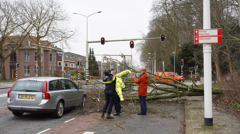 Vrijdagmiddag wint storm Eunice aan kracht in de regio Alkmaar. De brandweer en andere hulpverleners zijn druk met stormschade in de hele regio. Rond 15:00 uur werd een auto half geraakt door een omvallende boom op kruising van de Kennemerstraatweg met de Juliana van Stolberglaan in Alkmaar.