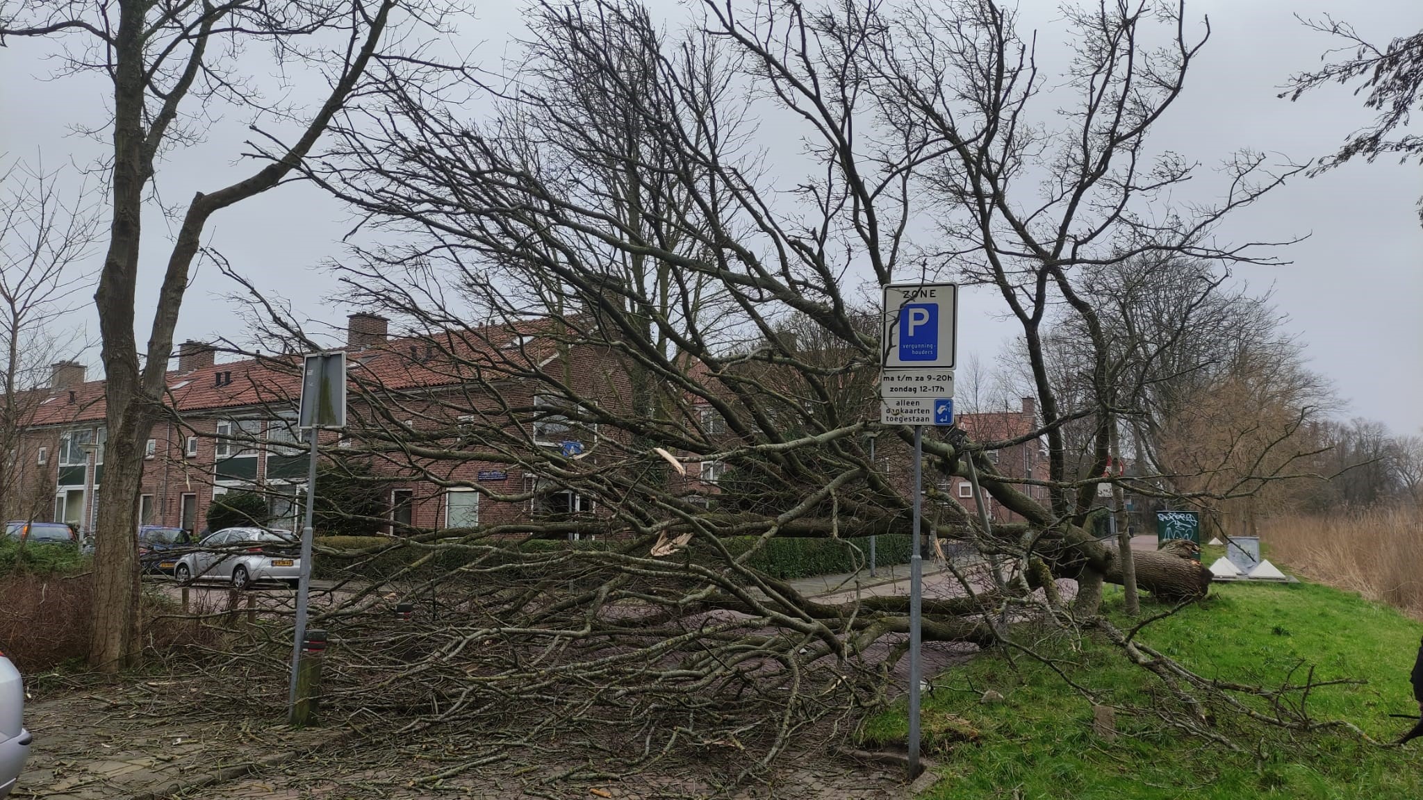 De boom in de Alkmaarderhout viel om, net terwijl het verkeerslicht op groen was gesprongen en een man in een grijze Volvo achter zijn voorligger optrok. De boom viel half op en voor zijn motorkap. De bestuurder schrok flink maar raakte niet gewond. Op 18 februari 2018 was er op vrijwel dezelfde plek een boom op de weg gevallen, toen met veel schade aan meerdere voertuigen tot gevolg.