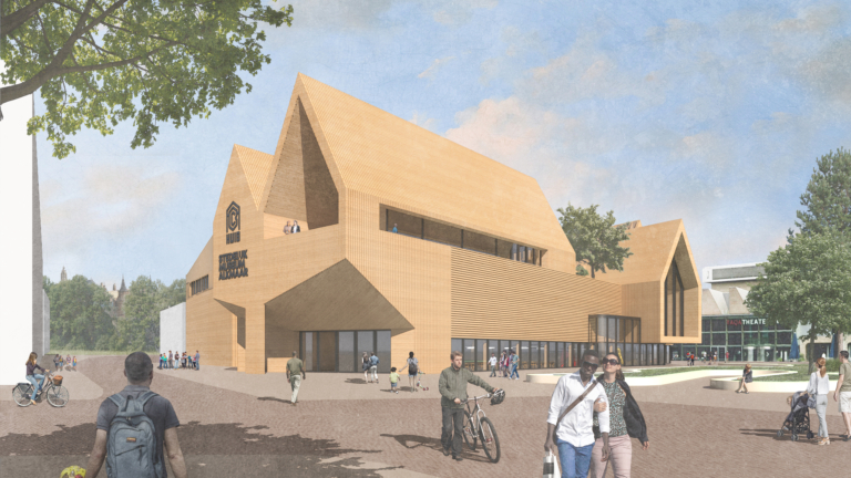 Het ontwerp is van het vermaarde architectenbureau Mecanoo van Francine Houben. Mecanoo is ook ontwerper van het huidige gebouw aan het Canadaplein. Het bureau is vooral bekend van de bibliotheek van New York, Centre of the Arts in Taiwan, Library of Birmingham en de TU Delft.