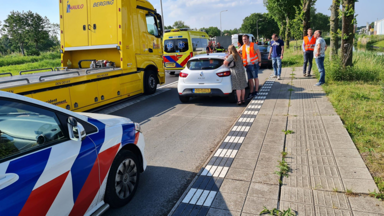 Een bestuurder moest net voorbij de verkeerslichten stevig remmen voor traag verkeer. Zijn Tesla besloot daar een noodstop van te maken en daar kon zijn achterligger in de witte Renault Clio niet tijdig meer op reageren. Beide auto's zijn door een berger afgevoerd.