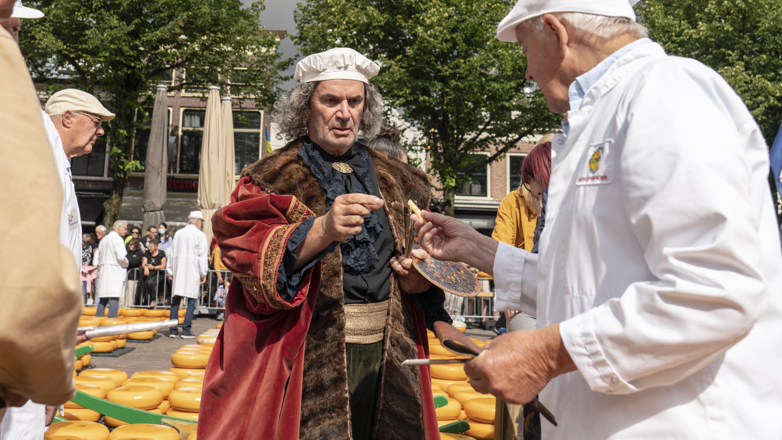 Vrijdag opende niemand minder dan schilder Rembrandt van Rijn in hoogst eigen persoon de Alkmaarse Kaasmarkt. De wereldberoemde Hollandse meester luidt om precies om 10.00 uur de bel, hét teken dat de markt geheel volgens traditie kan beginnen.