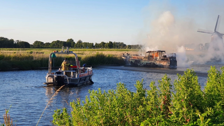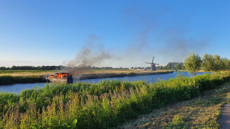 Vrijdagavond is langs de Westdijk in Heerhugowaard een brandend plezierjacht aangetroffen in het kanaal Omval-Kolhorn. De rookpluimen waren tot in Alkmaar zichtbaar.