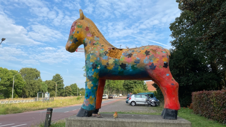 Het kleurrijke kunstpaard langs de Noordervaart in Stompetoren wordt over enkele weken verwijderd. Volgens de gemeente Alkmaar verkeert het in slechte staat en is het einde van de beperkte levensduur bereikt.