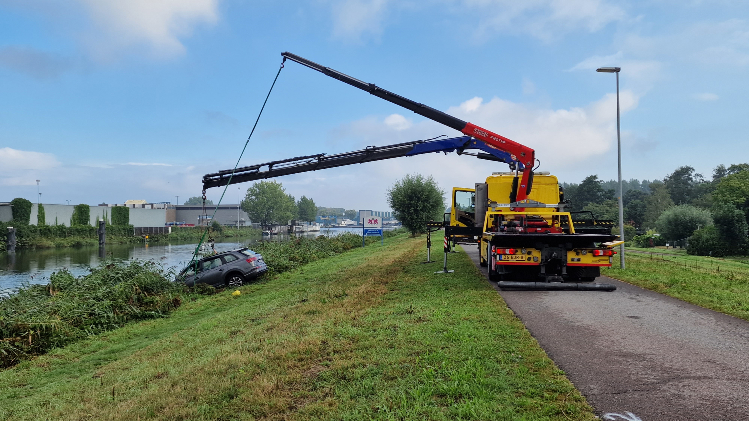 Volgens de woordvoerder gaat het om een Poolse huurauto. Een berger heeft de wagen uit het water gehaald.